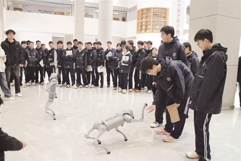 采访中,记者了解到,西安市航天城第一中学构建了“狭义AI课程”与“广义AI课程”相迷惑的分层体系。狭义课程聚焦算法基础与技艺旨趣,而广义课程则通过跨学科、社团行为杀青应用。咫尺,该校牵头开发的校本资源已包含4个单位、16个技俩。从宇树机器狗、无东说念主机的操控,到基于AI技艺的班徽想象大赛,东说念主工智能已不再是一个孤单的学科,而是渗入进语文、数学、英语等全学科的教导底色。