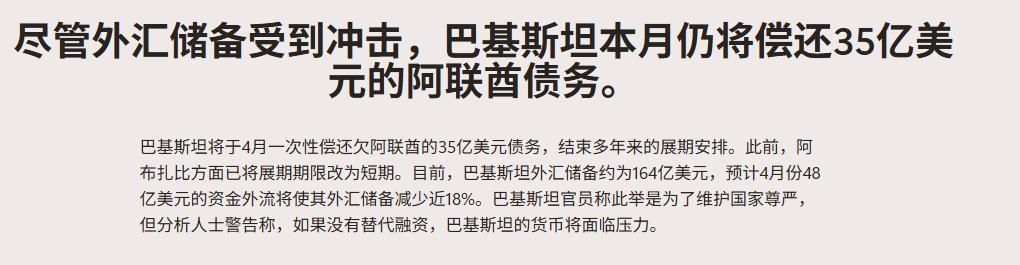 这径直导致巴基斯坦在接下来的4月份,将迎来极其千里重的外部偿付压力。