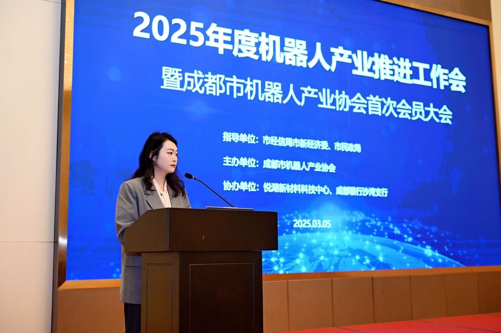 r3月5日,2025年度机器东说念主产业推动责任会暨成都市机器东说念主产业协会初度会员大会在成都举行。这次会议由成都市经信局市新经济委结合、成都市机器东说念主产业协会垄断,劝诱政府机构、产业链企业、金融机构及科研院所等百余位代表都聚,聚焦机器东说念主产业链高下流、傍边岸协同,围绕“政、产、学、研、用、金”交融赋能,共同推动成都机器东说念主产业高质地发展。